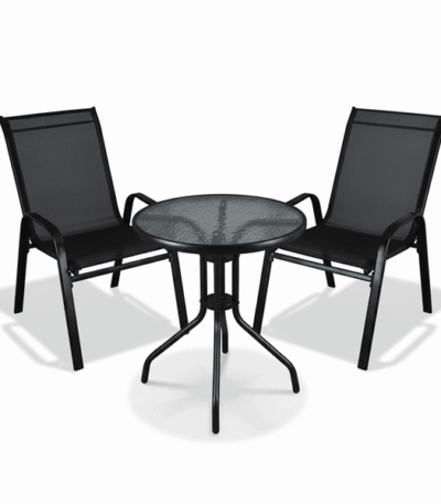Juego de Mesa Metálica Negra 60×70 cm con 2 Sillas 51×68×84 cm