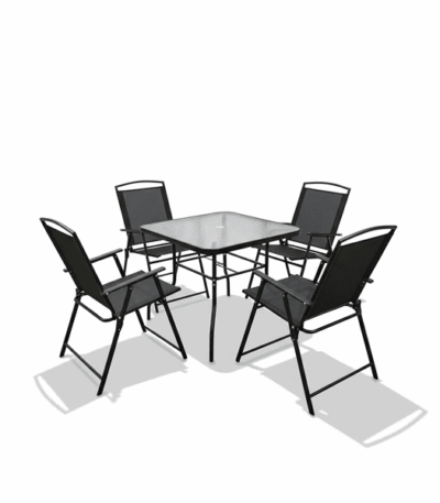 Juego de Mesa de Acero Negra con 4 Sillas de Acero Negras