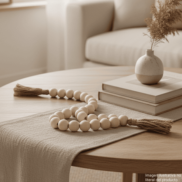 La cadena de cuentas de madera es un accesorio decorativo versátil y moderno, ideal para aportar un toque natural y cálido a cualquier ambiente. Su diseño artesanal con cuentas de madera permite integrarla en estilos nórdicos, boho, rústicos o minimalistas.