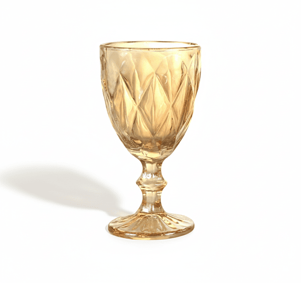 La copa de vidrio Diamante Doré destaca por su diseño elegante con relieve facetado y detalles en dorado, ideal para realzar la presentación de vinos, espumantes o cócteles. Su estilo sofisticado la convierte en una pieza perfecta para reuniones, celebraciones o bares.
