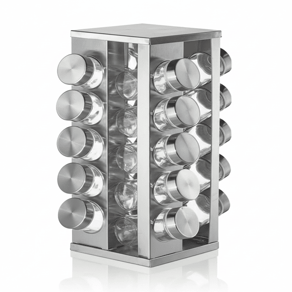 Organizá tus condimentos de manera práctica y moderna con este especiero imantado de acero. Incluye 6 frascos con soporte, ideales para mantener tus especias visibles y siempre a mano. Su diseño versátil permite colocarlo en la cocina como accesorio decorativo y funcional.