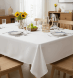 El mantel de tela antimanchas combina practicidad y estilo, ideal para proteger tu mesa sin resignar elegancia. Su tratamiento especial repele líquidos y facilita la limpieza, siendo perfecto para el uso diario en el hogar o en reuniones especiales.