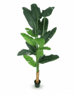 La planta banano artificial con maceta de 2,5 metros es una pieza decorativa imponente que transforma cualquier ambiente con su estilo tropical. Sus grandes hojas verdes de aspecto natural aportan frescura y vitalidad, creando un punto focal en hogares, oficinas, hoteles o locales comerciales.