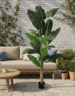 Gracias a su altura destacada, es ideal para espacios amplios y para quienes buscan una decoración de gran tamaño sin necesidad de cuidados. Al incluir maceta, está lista para ubicar y realzar la ambientación con un toque exótico y elegante.