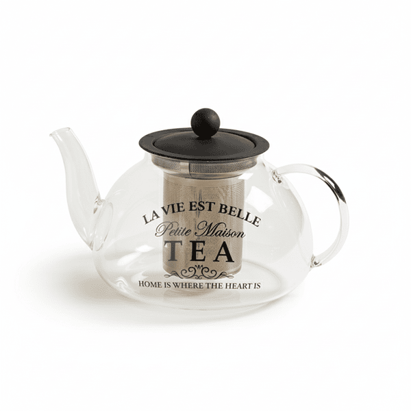 La tetera de vidrio con filtro Petit Maison es ideal para preparar infusiones de manera práctica y elegante. Su diseño transparente permite apreciar el proceso de preparación, mientras que el filtro integrado asegura un sabor puro y sin residuos. Perfecta para el uso diario o para disfrutar momentos especiales.